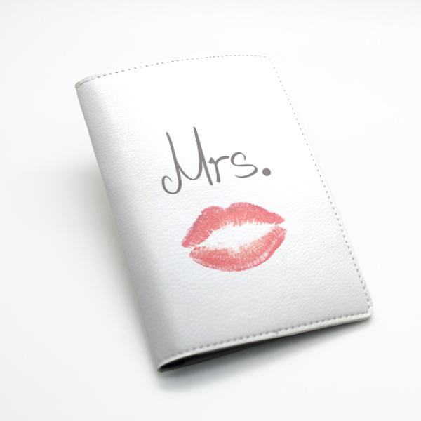 PU Leather Passport Holder Case Cover Travel Wallet -- Mr and Mrs moustaches and lips, or custom name (K23)