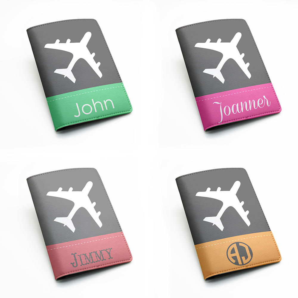 Travel holiday plane airplane custom name personalized PU Leather Passport Holder Case Travel Wallet Cover, monogram initial (i02)
