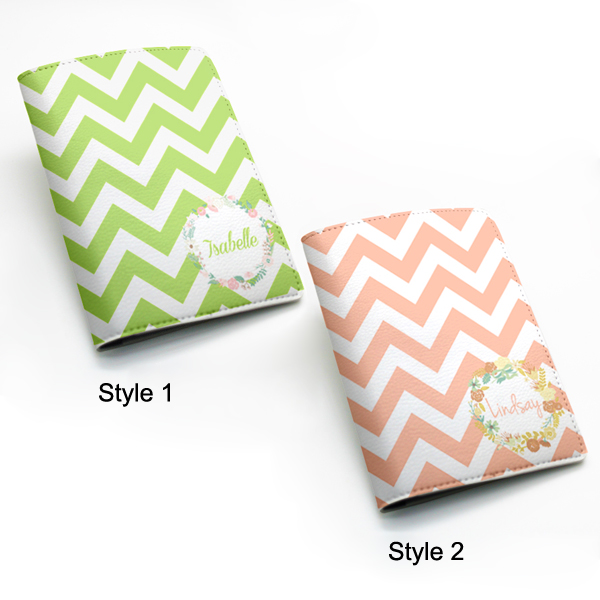 Chevron Zigzag Custom Name Personalized PU Leather Passport Holder Case Travel Wallet Cover -- custom name monogram flower floral rose (K37)