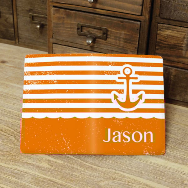 Anchor Stripes Custom Personalised Monogrammed PU Leather Passport Holder Case Wallet Cover, orange and many colors (N-034)