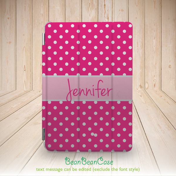 Polka dots custom name smart cover case for iPad mini case, new iPad mini retina 2 case, iPad Air case, custom name, many colors (N06)