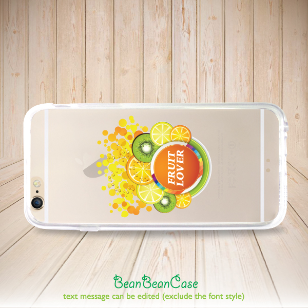 Transparent clear iPhone 6 iPhone 6 Plus case, iPhone 5C iPhone 5s 5 4 4s clear case, fruit lover design with your custom name text (A110)