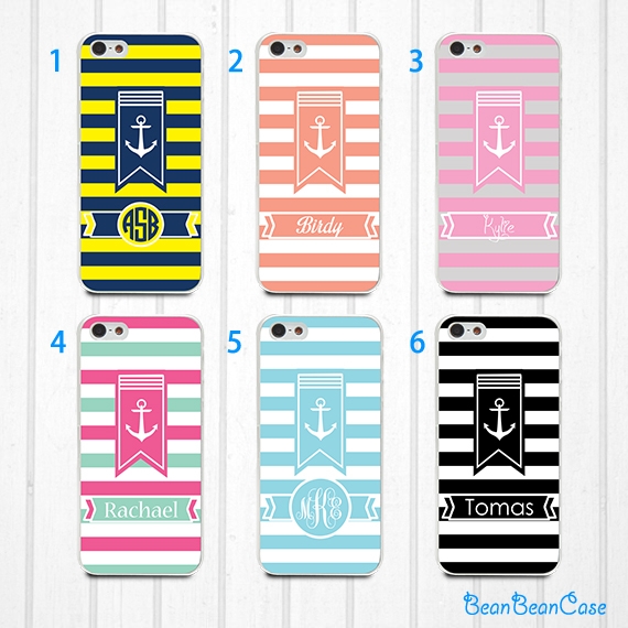 Personalized name initial, nautical anchor sail case for iPhone 6s, Samsung S6/Note5, Sony, LG Nexus, Nokia Lumia, HTC One M8/M9, Moto (N05)