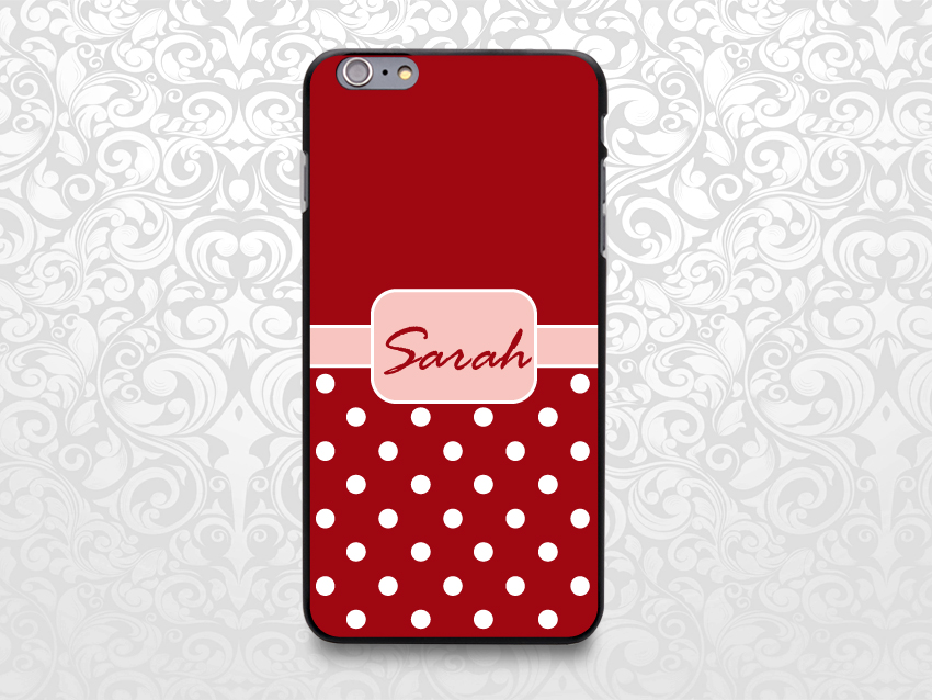 Red Polka Dots custom name case for iPhone 7/6/6s/5/5s/5c, Samsung S6/Note5, Sony, LG Nexus, Nokia Lumia, HTC One, Moto X (BCBL-3)