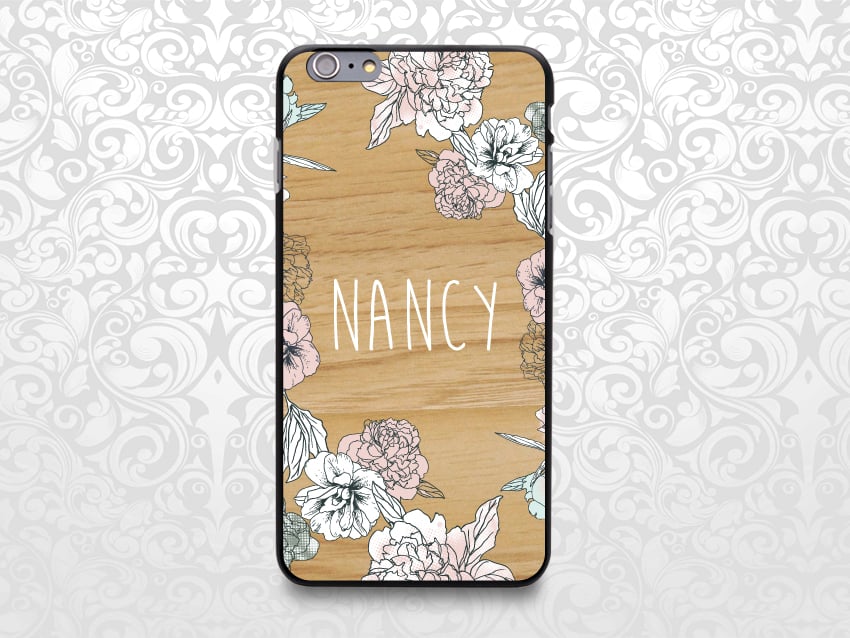Flower Wood custom name case for iPhone 7/6/6s/5/5s/5c, Samsung S6/Note5, Sony, LG Nexus, Nokia Lumia, HTC One, Moto X (BCBL-68)