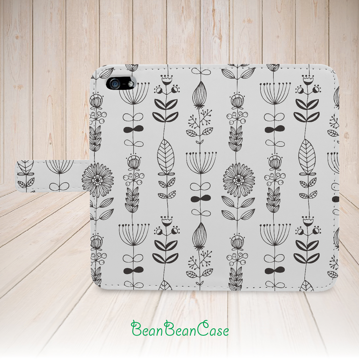 grey black flower and leaf flip pu leather cover case for iPhone 7/7 Plus/6s/6/5/5s/5c case, moto X moto X2, samsung galaxy S5 S6 edge note 4 5 (A68)