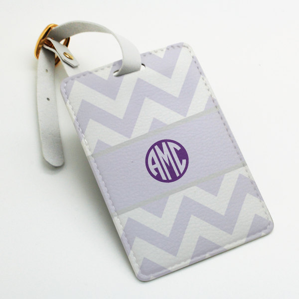 Personalised pu leather Luggage Tag, wedding ID Tag, Travel Tag, Bag Tag, Chevron zigzag style, Custom Name Monogram Initial, with strap