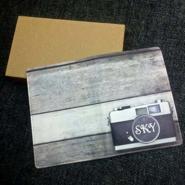 Vintage Camera Wood Custom Personalised Monogrammed PU Leather Passport Holder Case Wallet Cover (S-004)