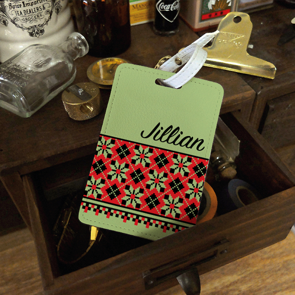 Aztec Tribal, Ancient Pattern Personalised PU Leather Luggage Tag, Travel Tag, Bag Tag, custom name monogram initial (N-014)