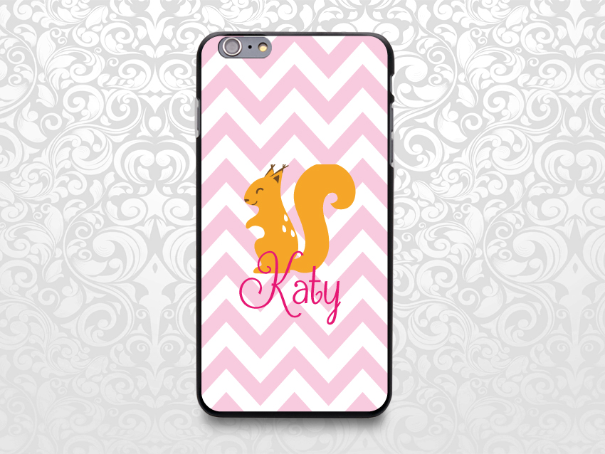 Colorful chevron Cute Squirrel custom name case for iPhone 7/6/6s/5/5s/5c, Samsung S6/Note5, Sony, LG Nexus, Nokia Lumia, HTC One, Moto X (BCBL-28)