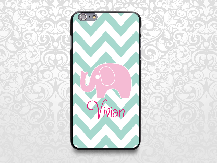 Elephant colorful chevron custom name case for iPhone 7/6/6s/5/5s/5c, Samsung S6/Note5, Sony, LG Nexus, Nokia Lumia, HTC One, Moto X (BCBL-31)